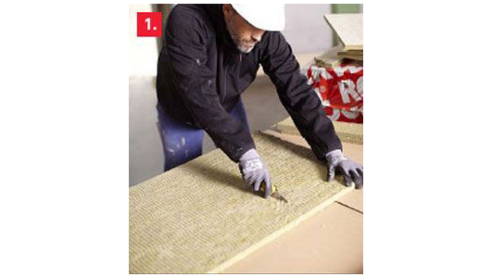 1. Leikkaa eristelevyt oikeisiin mittoihin käyttäen mattoveistä, sahaa tai pyörösahanterää.