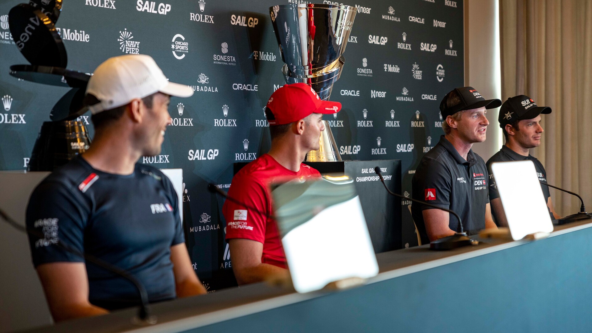 ROCKWOOL Denmark SailGP team's driver Nicolai Sehested speaks at Season 4 opening press conference in Chicago Sail Grand Prix