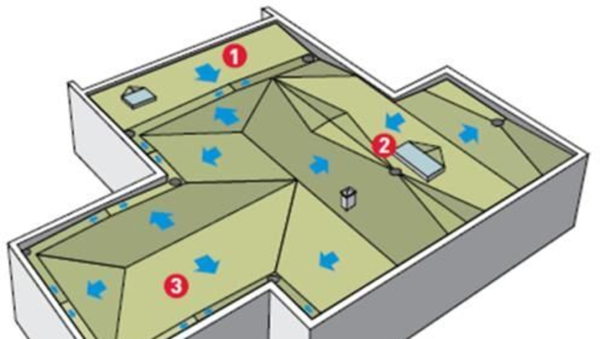 A különböző lejtésű tetősíkok összemetsződéseinél kialakuló hajlatoknak és vápáknak rendelkezni kell a megfelelő lejtéssel, illetve biztosítani kell az összefolyókhoz vezető pontralejtést a követelményeknek megfelelően.
